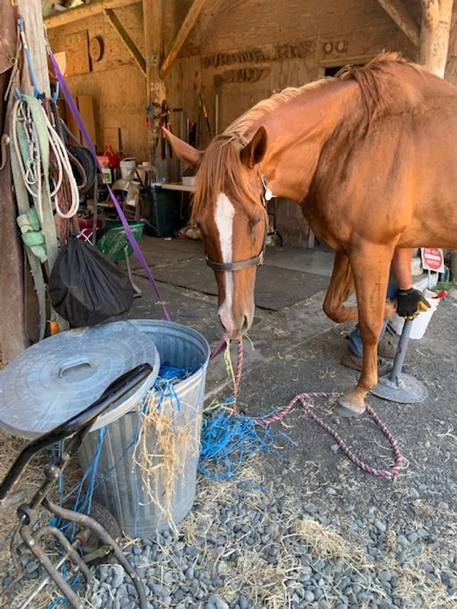 George is a thoroughbred gelding. He is a goofball. George loves to give kisses, steal snacks, and play with his buddies.