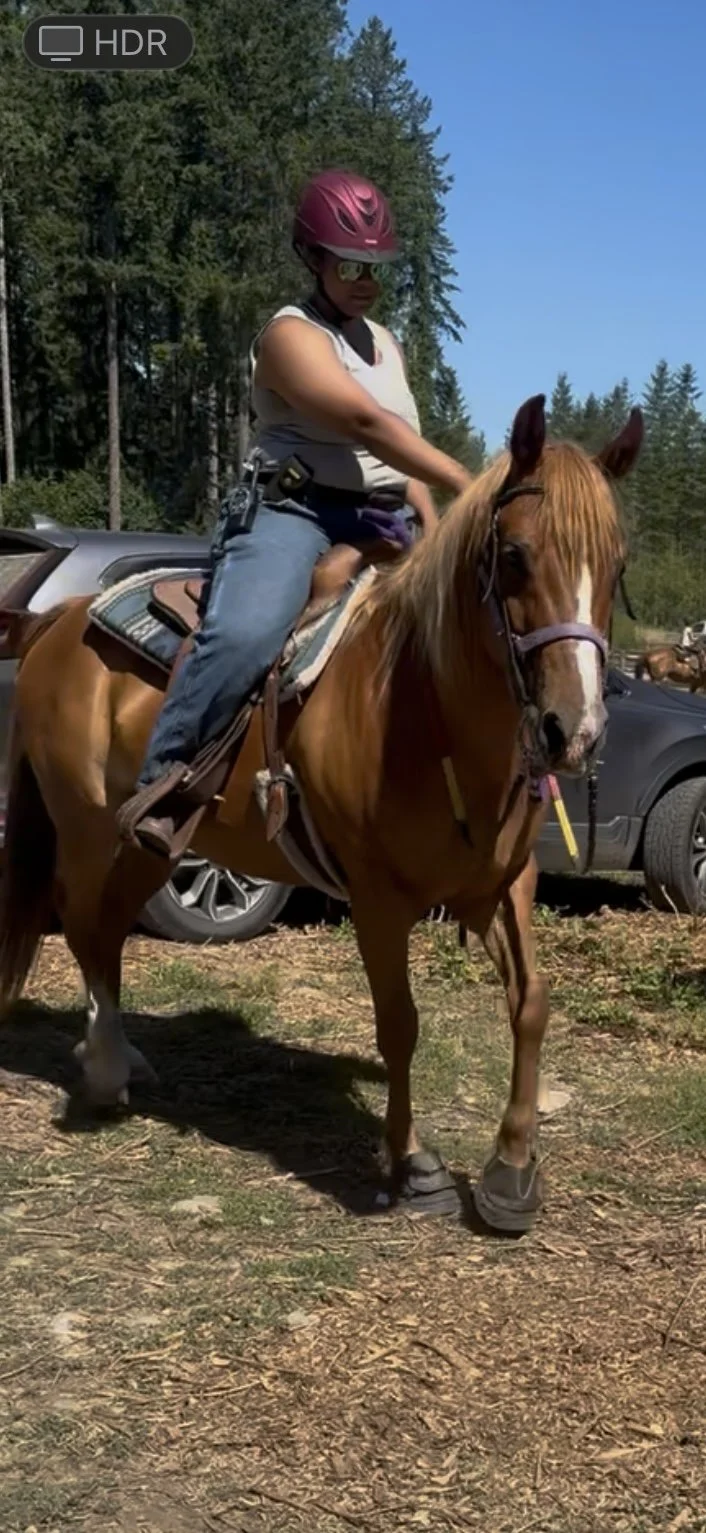 Mr Whiskey was generously donated to us in the spring of 2024. He is a steady horse for all of our riders. He loves trail rides. Whiskey is also a goofball and likes to do tricks with his tongue.